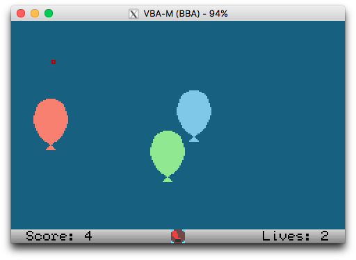 This summer I am taking CS2110 (Introduction to Computer Organization and Programming). For the last few weeks of the semester we are learning about C programming. One of the assignments is to create a Gameboy Advance (GBA) game. For this assignment, I decided to create a simple balloon popping game. Each balloon is drawn using horizontal lines as well as rectangles. Instead of redrawing the entire screen each frame, in most cases only the updated parts are redrawn. After submitting the assignment, I have worked on the game a bit more. I was able to use Bresenham’s Line Algorithm to draw a straight line from the laser pointer at the bottom of the screen to wherever the target is on the screen. This shows up when the player fires the laser.